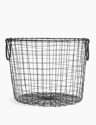 4.8 out of 5 stars with 21 ratings. For a more classy vibe, pick wire organizers in the right color for your home. Household essentials black large round woven wicker storage basket with handles brown geometic design. Use them to hold laundry, blankets, magazines and more. In white and other light shades, wire baskets can even give you an elegant look.